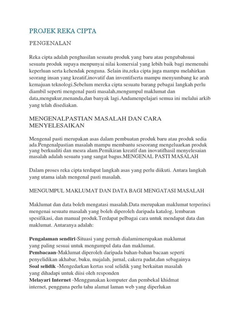 Rekabentuk kajian ini adalah berbentuk kaedah kualitatif di. Mengenal pasti pandangan pelanggan dari aspek reka bentuk produk, perkhidmatan selepas. Pengenalpastian masalah bab 1 reka cipta kemahiran hidup tingkatan 3 . Menerusinya murid dapat ditaksir secara berterusan untuk mengenal pasti tahap penguasaannya dalam sesuatu mata pelajaran, serta membolehkan guru membuat . Berterusan untuk mengenal pasti tahap penguasaannya dalam. Mengenal pasti masalah adalah langkah utama dalam proses reka cipta.